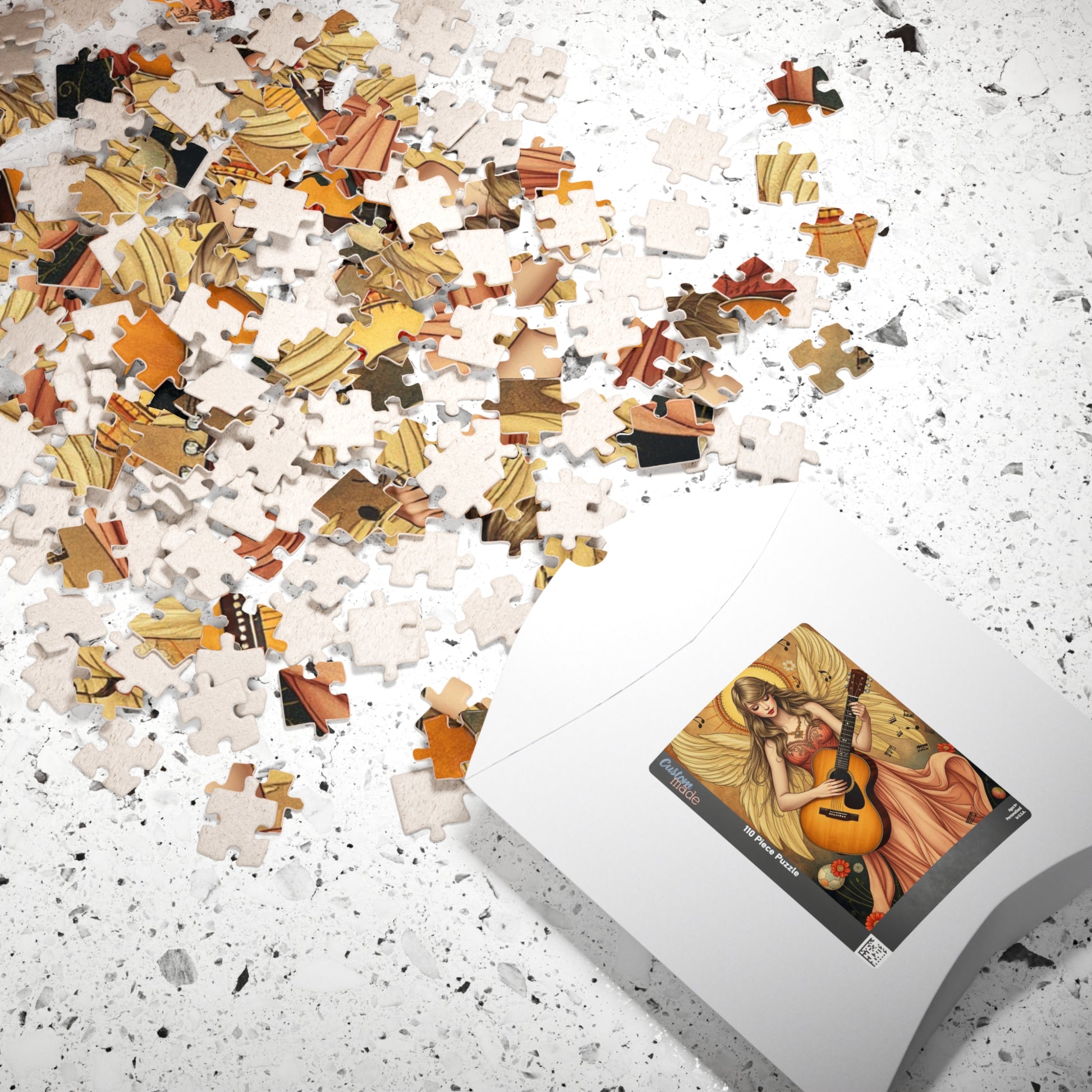 A vintage Puzzle featuring an Angel of Harmony playing a guitar, with vibrant colors and a glossy finish. Perfect for those who enjoy challenging puzzles and appreciate angelic and vintage designs. Ideal for gifting on Christmas, birthdays, or just to enjoy a relaxing afternoon.