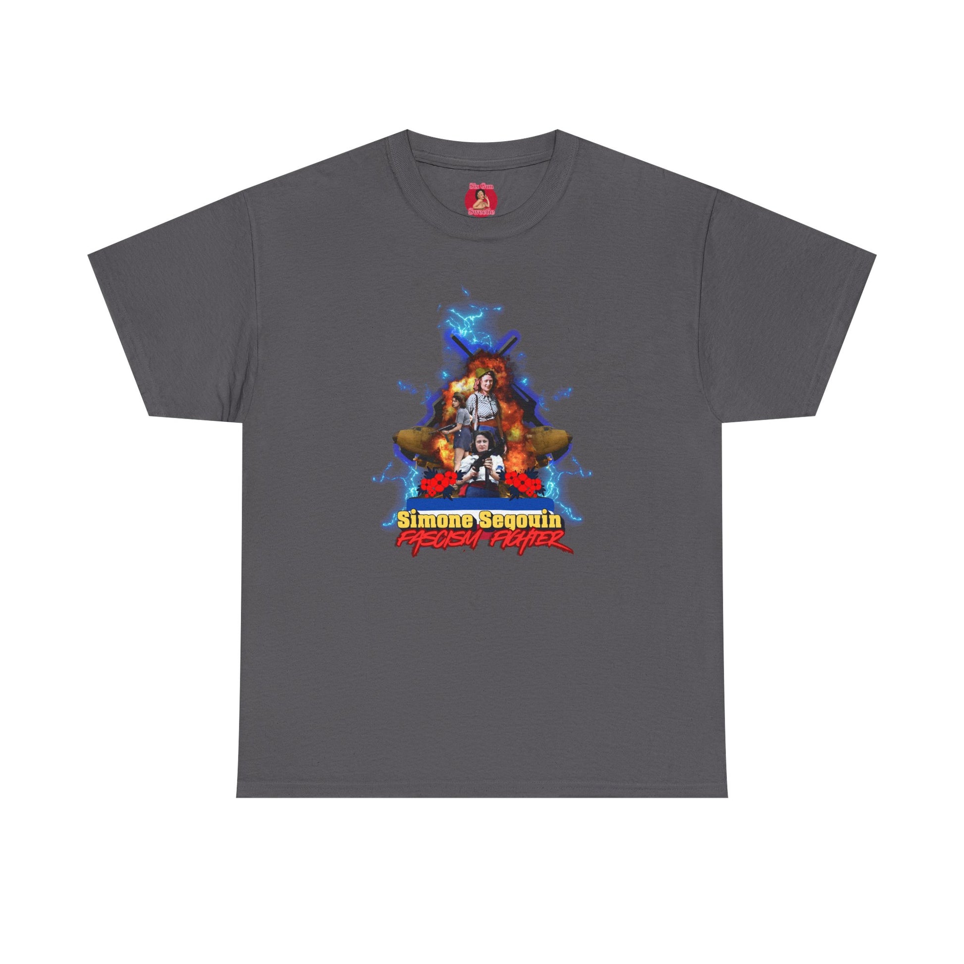 This tee features a maximalist design honoring French resistance fighter Simone Segouin, resulting in a powerful and empowering piece. Perfect for those who appreciate history and strength, this tee can be worn casually or dressed up for special occasions. Ideal for those who value bold and unique fashion choices.