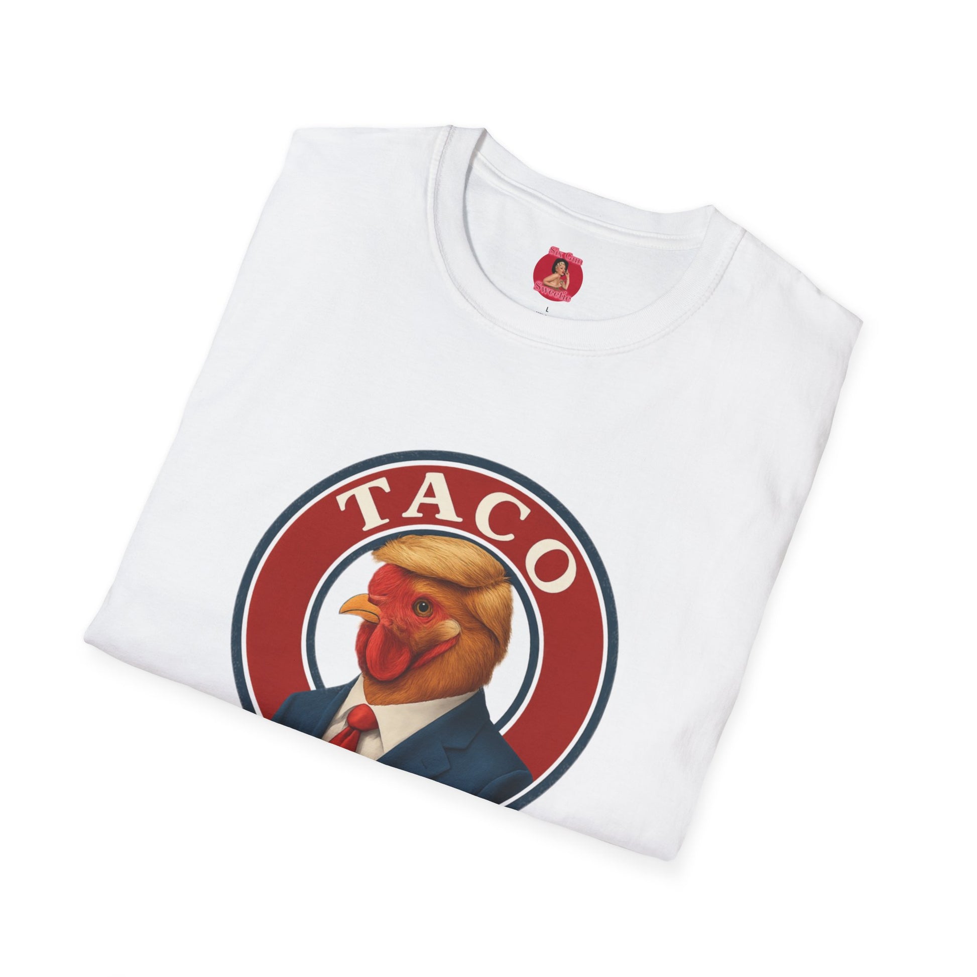 Express your humor and political views with this Taco Trump design T-Shirt, depicting Trump as a chicken. Perfect for someone who enjoys funny and witty designs that make a statement. Ideal for casual wear and great for those who enjoy political satire and humor. Relevant for occasions like parties, casual outings, and political events.