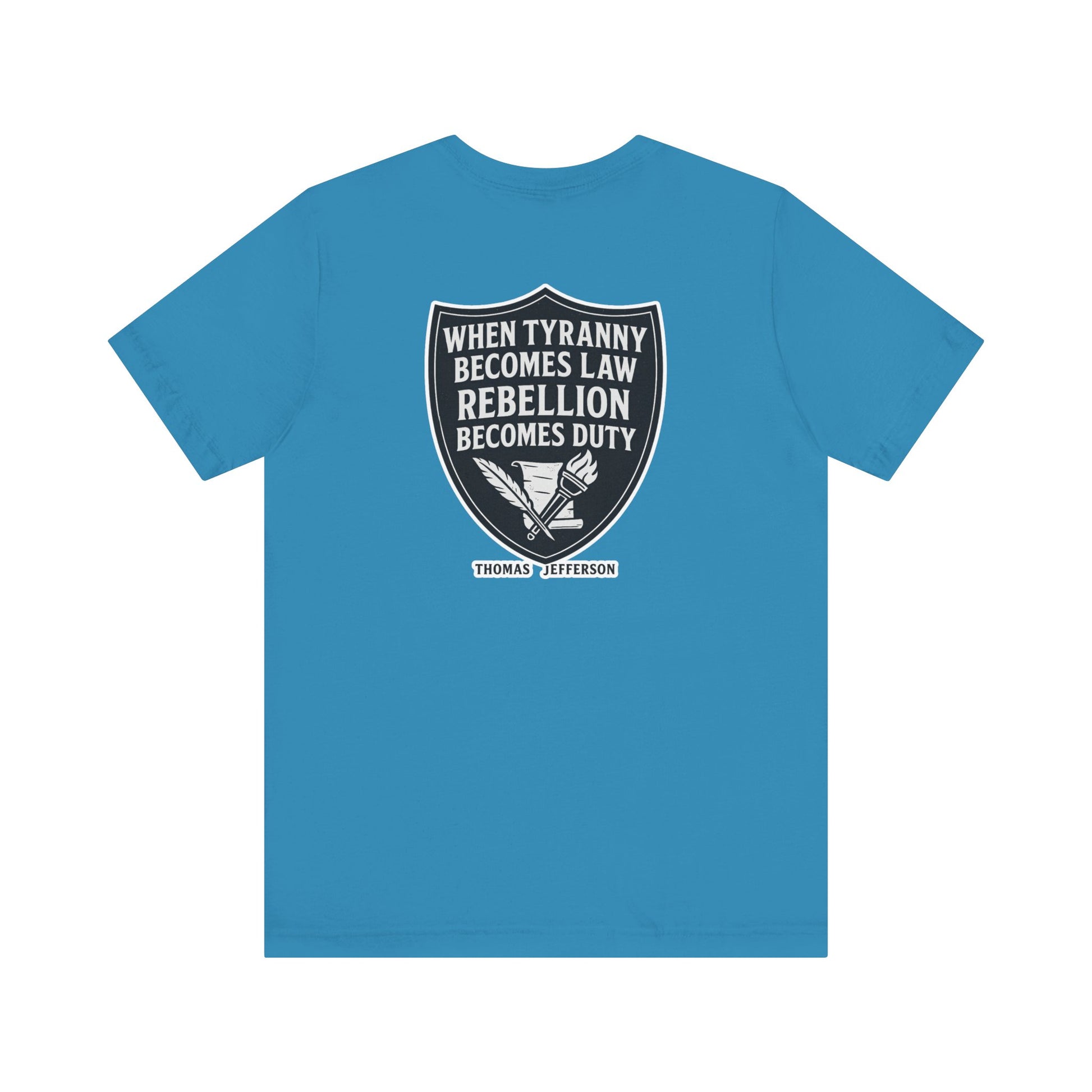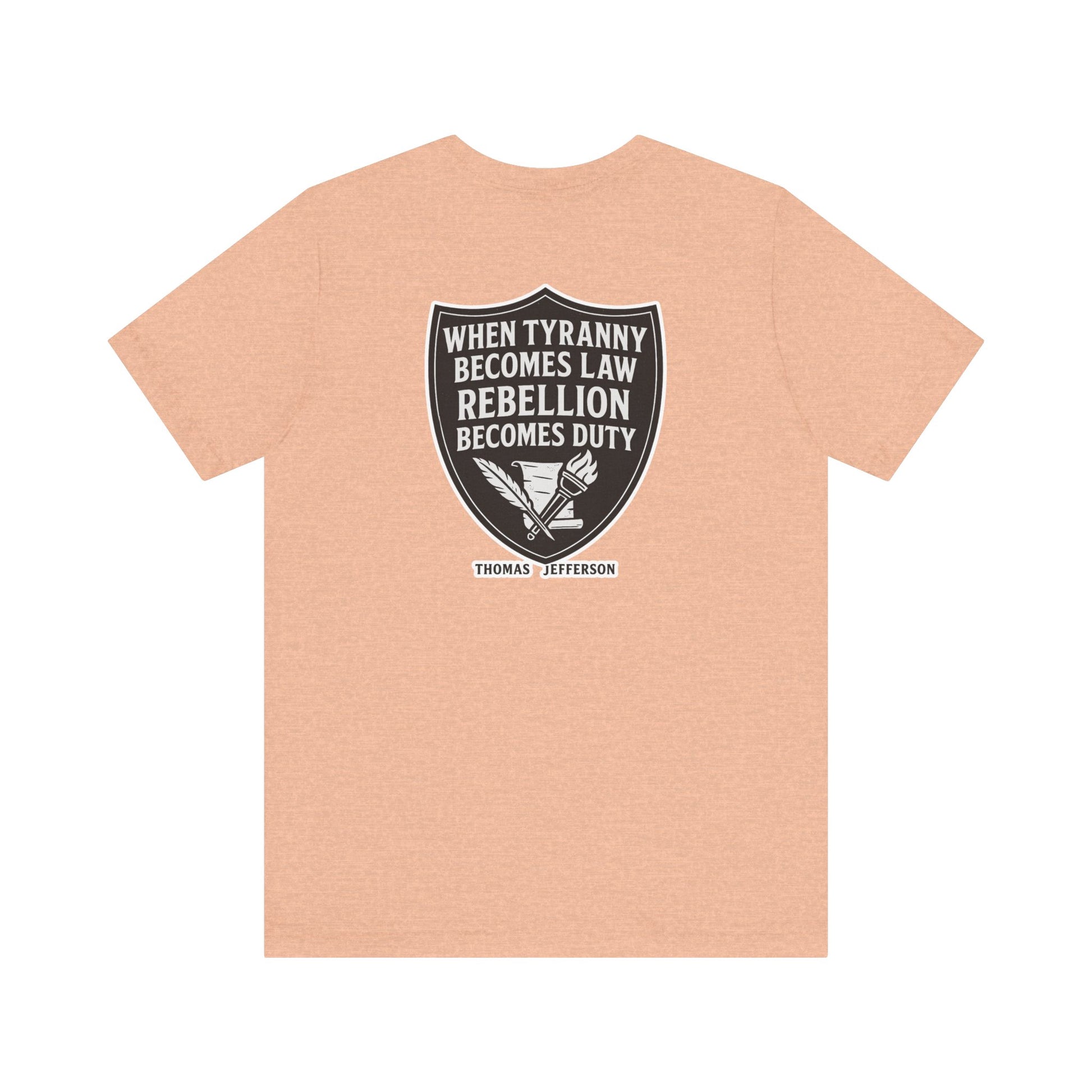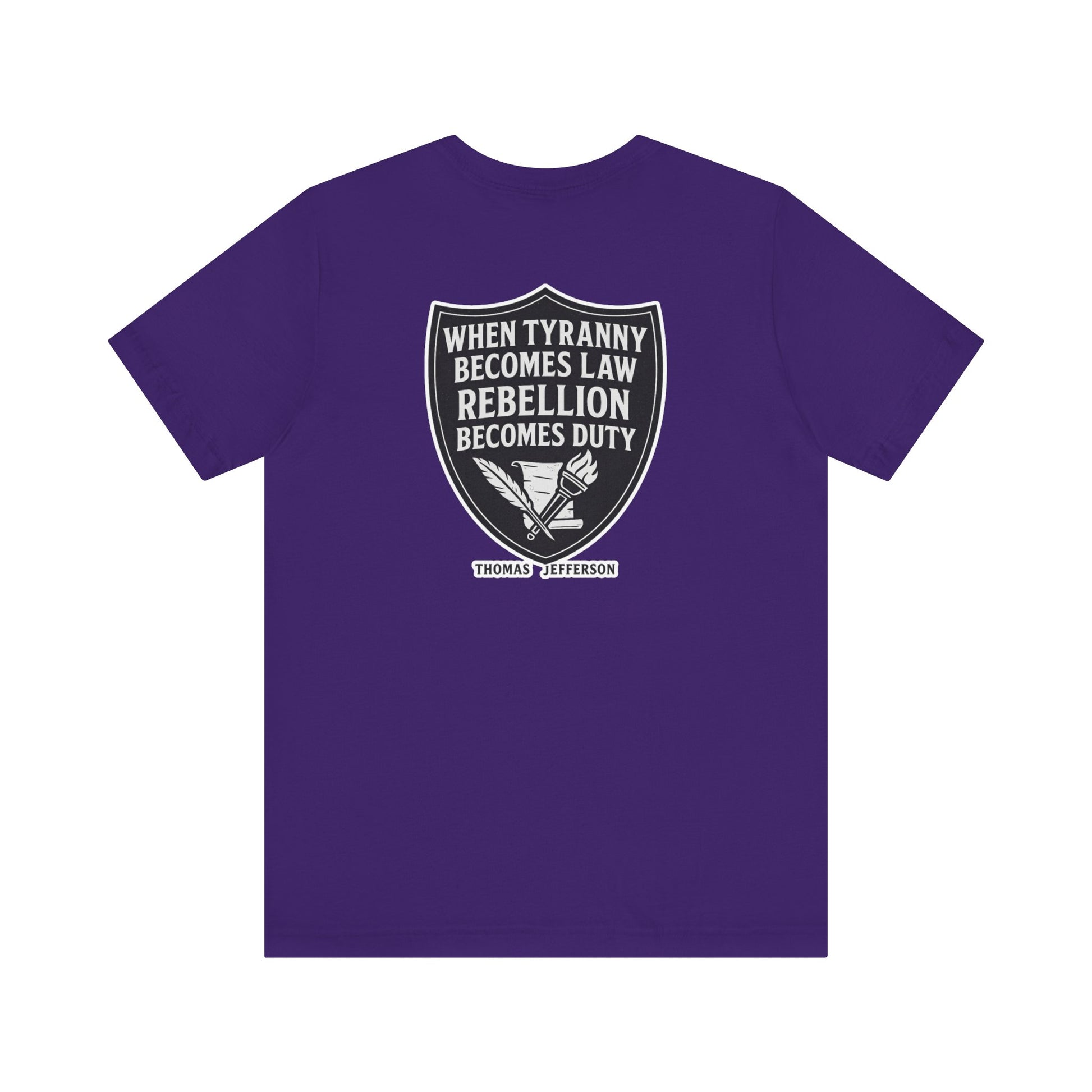 Thomas Jefferson Quote Unisex Tee - Rebellion Becomes Duty-Back and Front Print