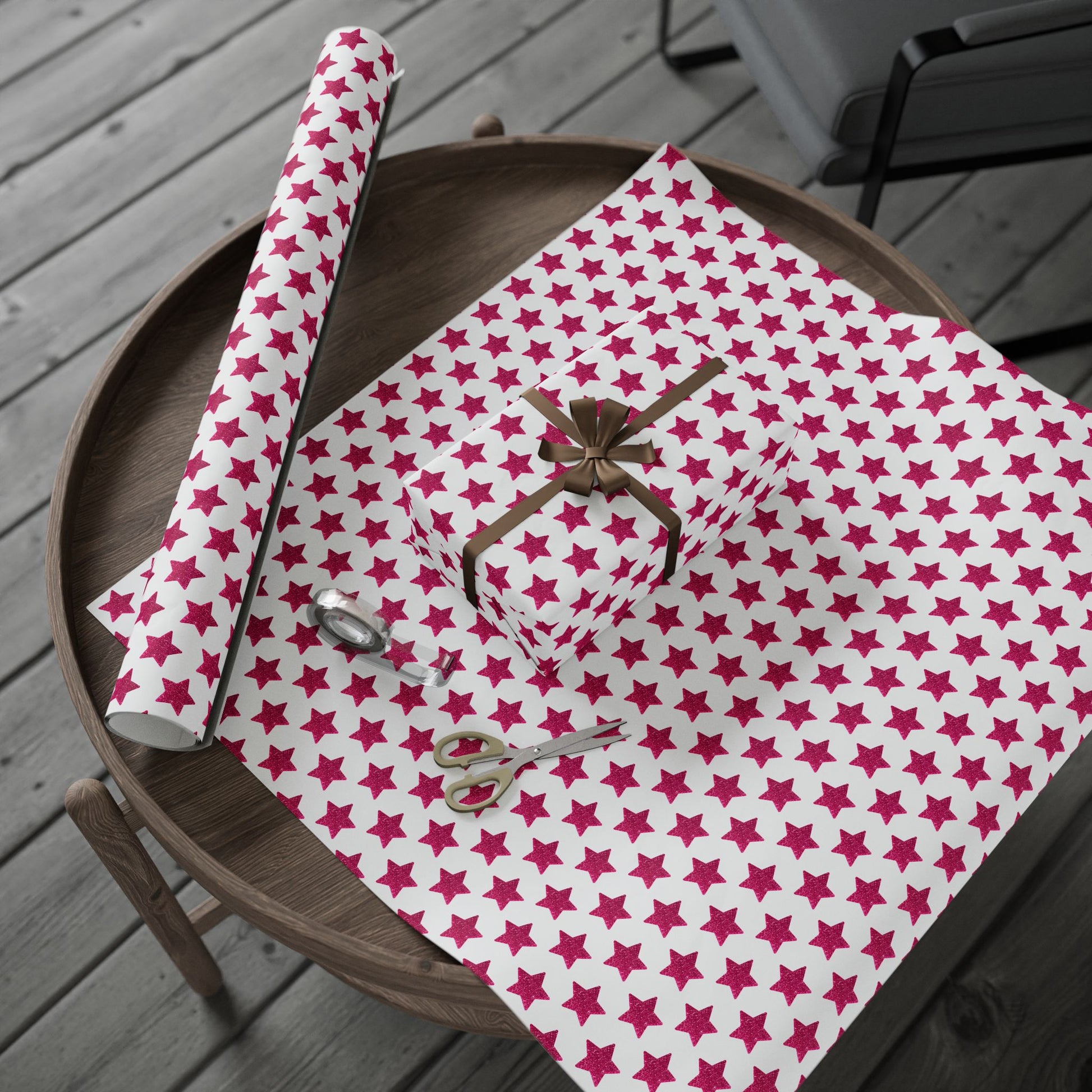 Wrapping Papers, Red Glitter Star Pattern Gift Wrap, Festive Minimalist Christmas Gift Wrap, Holiday Paper Roll, Sparkly Gift Wrap Sheets,